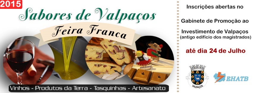 Já estão abertas as inscrições para a participação na Feira Franca de Valpaços, que este ano decorrerá em meados do mês de Agosto. A Feira Franca, da responsabilidade da Câmara Municipal de Valpaços e da EHATB – Empreendimentos Hidroeléctricos do Alto Tâmega e Barroso, EIM, SA, através do Gabinete de Promoção ao Investimento de Valpaços irá, este ano, realizar-se mais cedo. Assim, em meados do mês de Agosto, os Paços do Concelho serão palco de finais de tarde animados, que conjugarão a gastronomia e a animação local. Com o objetivo de dar destaque aos sabores de Valpaços, vários Produtos da Terra e Artesanato, o programa de animação promete levar milhares de pessoas ao evento que tem contabilizado inúmeros sucessos. Para mais informações/inscrições deve dirigir-se ao GPI – Gabinete de Promoção ao Investimento – de Valpaços (antigo edifício dos magistrados), entre as 9h00 e as 12h30 e as 14h00 e as 17h30, de segunda a sexta-feira.