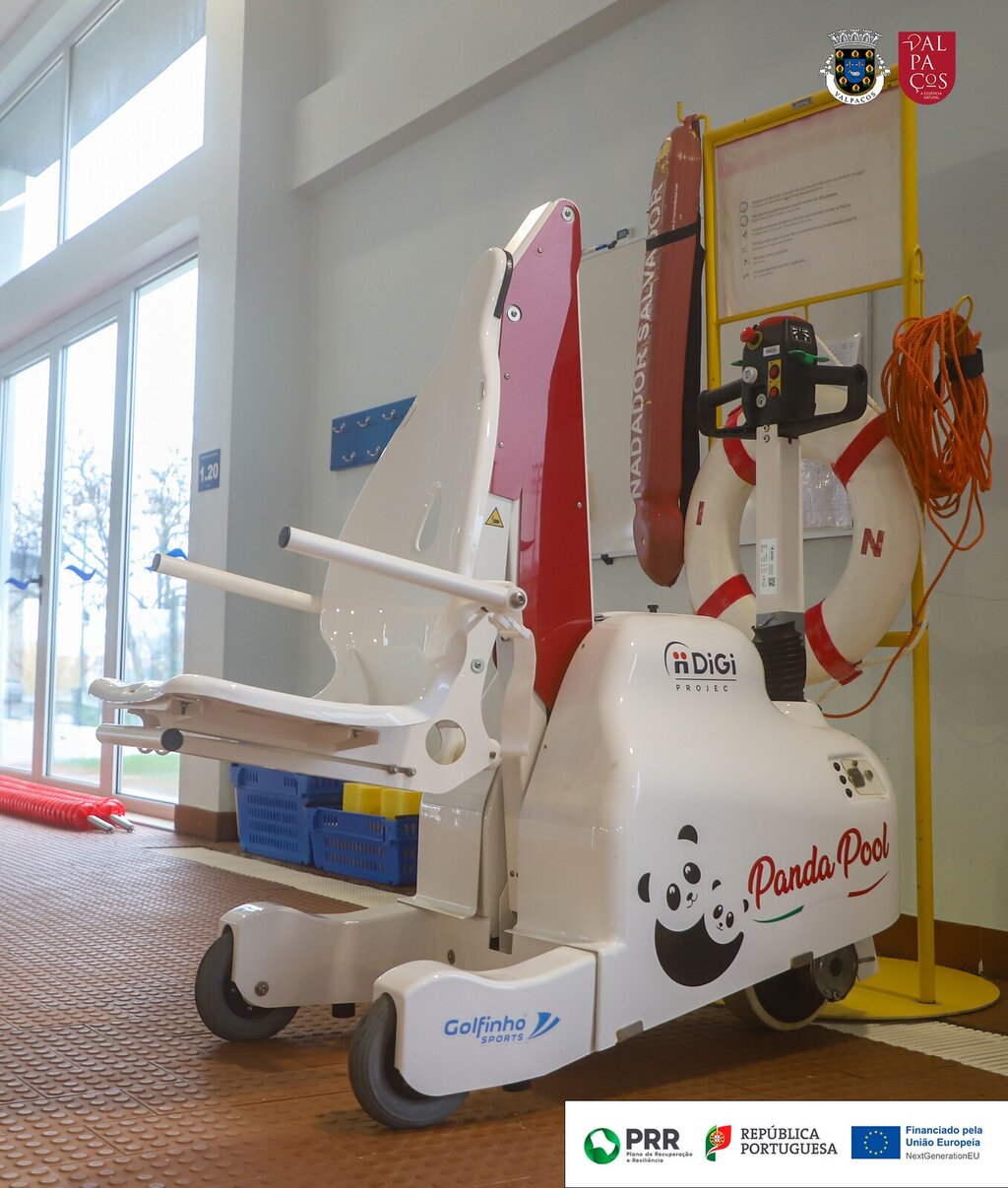Também nas Piscinas Municipais, com o objetivo de garantir o acesso seguro e autónomo aos tanques de água, o Município avançou com a aquisição de um elevador portátil totalmente motorizado, equipado com sensores de proteção e sistema de travagem automática, assegurando condições de segurança e conforto aos utilizadores.