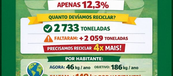 Em 2025, o concelho de Valpaços produziu 5 465,84 toneladas de resíduos urbanos. Destas, apenas 674,5 toneladas foram encaminhadas para reciclagem , o que representa ...